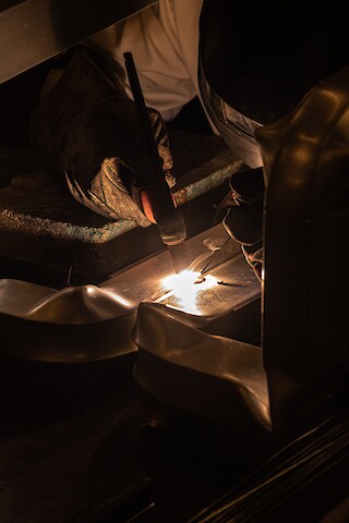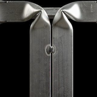 The Y-Stool was designed for the scenography of an exhibition on the utilization of residual and waste materials in the Material Archive Switzerland. The starting point for the production was used aluminum profiles, which were reprocessed in a six-step process: First, the old material was cut to the required length, followed by cleaning with acetone and white spirit, marking the bending points, then bending with a five-ton press under the dies specially developed by Studio Topo and finally welding the three parts together to form the finished stool.