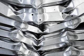 A tight time frame and the restriction of having to use used aluminum profiles ultimately allowed us to take a new approach to materials. It was an interesting challenge, because designing with waste materials offers the possibility of a special, individual expression. We often asked ourselves to what extent traces of use should be concealed or whether we could find a design language that would integrate them well. The result is an object with a strong character that could never have been realized in the same way with new aluminium.